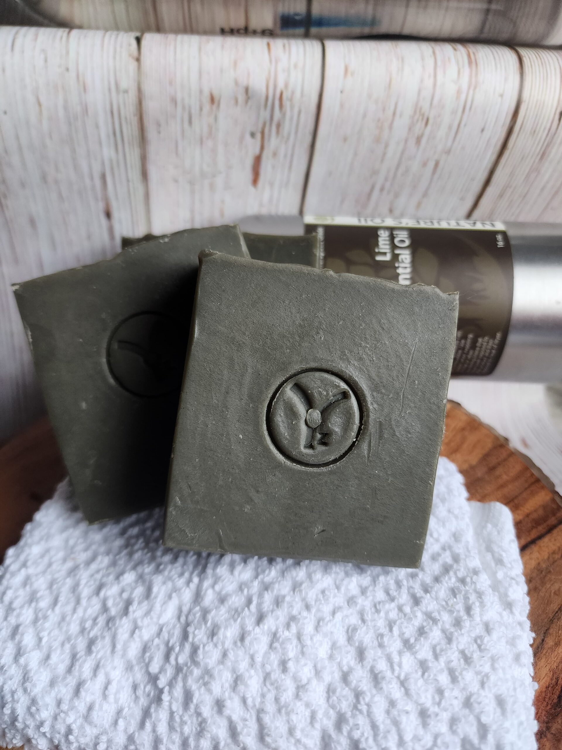Ingredients: Saponified oils of: Coconut, Olive, Palm and Castor Oils, Shea Butter, Distilled Water, Sodium Hydroxide, Aloe Vera Juice, Colloidal Oatmeal, Kaolin Clay, Activated Charcoal, Pine Tar, Essential Oils.